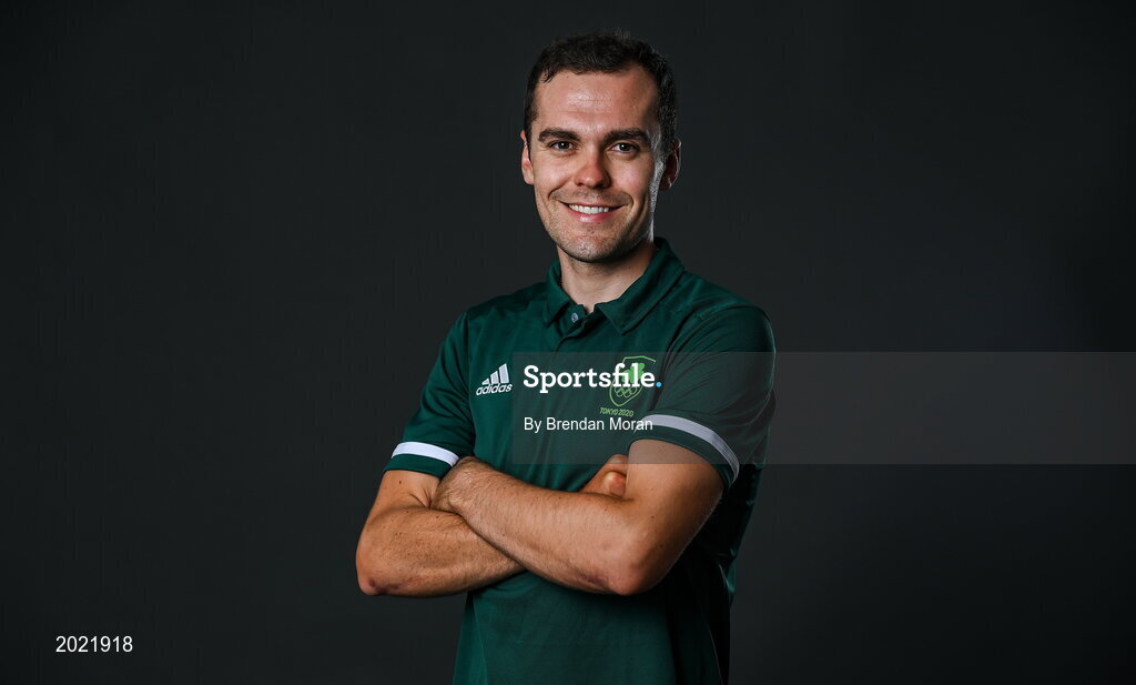 8 June 2021; Track cyclist Mark Downey poses for a portrait during the Tokyo Team Ireland Announcement for Cycling in Dublin. Photo by Brendan Moran/Sportsfile