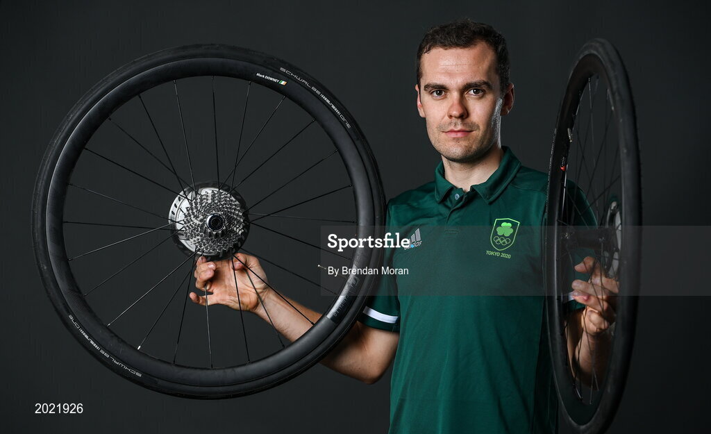 8 June 2021; Track cyclist Mark Downey poses for a portrait during the Tokyo Team Ireland Announcement for Cycling in Dublin. Photo by Brendan Moran/Sportsfile