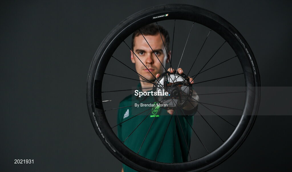 30 June 2021; Track cyclist Mark Downey poses for a portrait during the Tokyo Team Ireland Announcement for Cycling in Dublin. Photo by Brendan Moran/Sportsfile