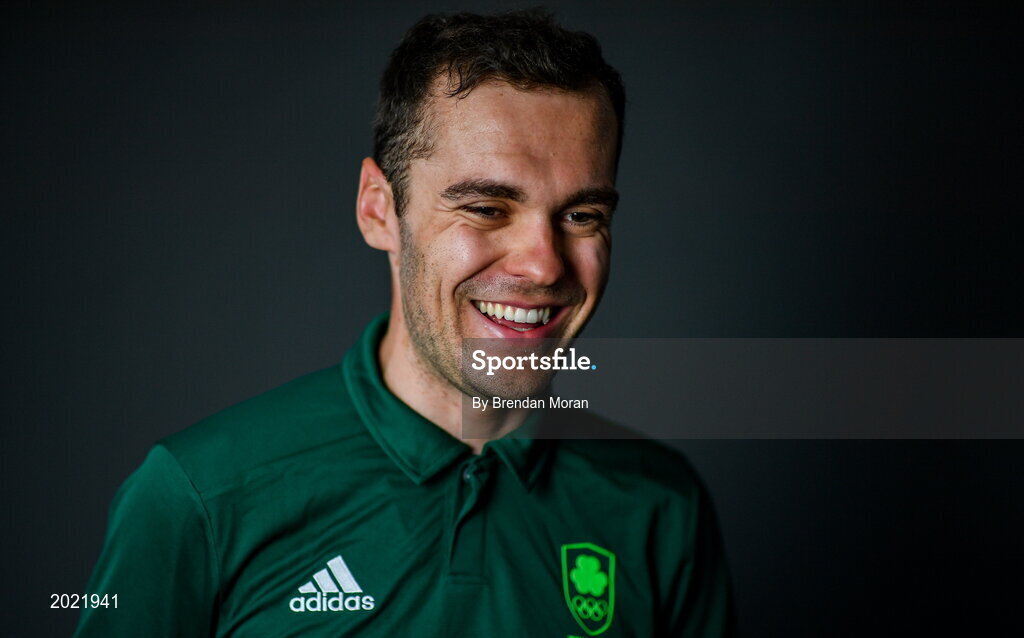 30 June 2021; Track cyclist Mark Downey poses for a portrait during the Tokyo Team Ireland Announcement for Cycling in Dublin. Photo by Brendan Moran/Sportsfile