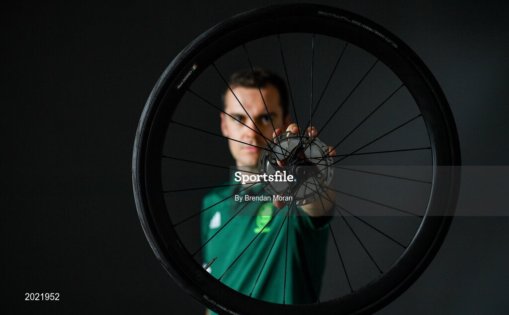 30 June 2021; Track cyclist Mark Downey poses for a portrait during the Tokyo Team Ireland Announcement for Cycling in Dublin. Photo by Brendan Moran/Sportsfile