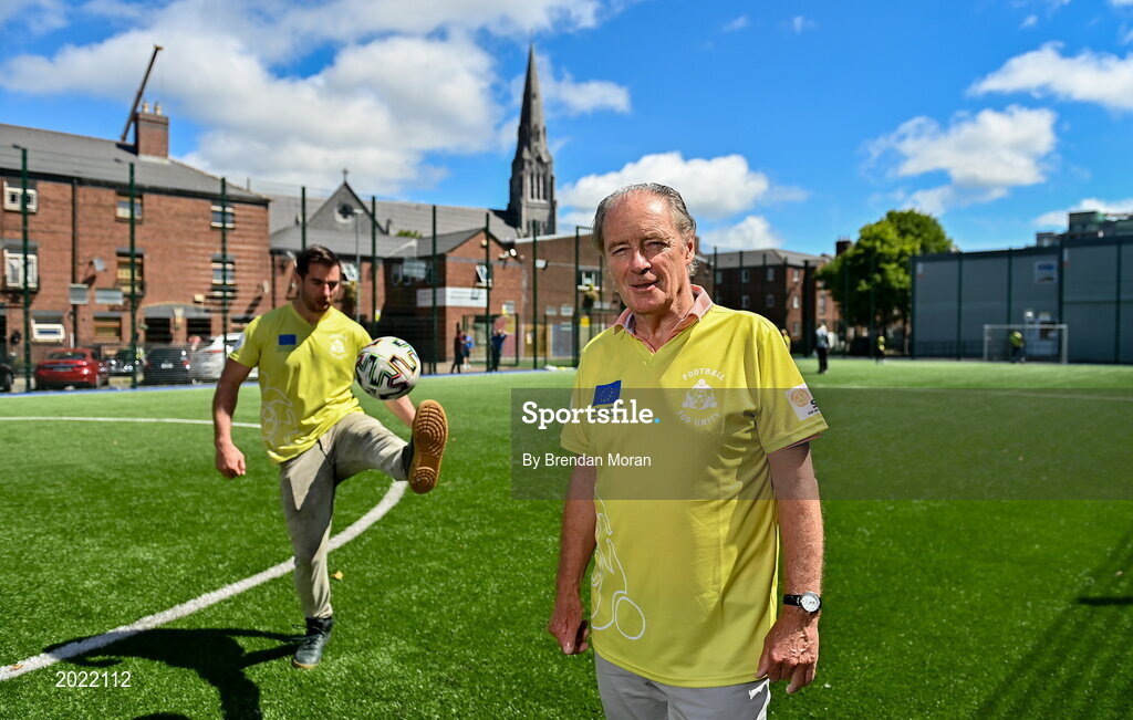 10 June 2021; Football for Unity ambassadors Michael Darragh MacAuley, left, and Brian Kerr pictured at the launch of the Football for Unity Festival which will take place at venues across the north east inner city of Dublin from Monday 14th of June to Friday 16th of July. The Football for Unity Festival aims to foster the social inclusion of third-country nationals sustainably through active participation in football-based initiatives. For more information visit - www.footballforunity.ie”. Photo by Brendan Moran/Sportsfile