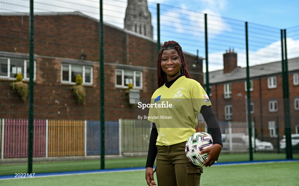 10 June 2021; Mariama Kamari at the launch of the Football for Unity Festival which will take place at venues across the north east inner city of Dublin from Monday 14th of June to Friday 16th of July. The Football for Unity Festival aims to foster the social inclusion of third-country nationals sustainably through active participation in football-based initiatives. For more information visit - www.footballforunity.ie”. Photo by Brendan Moran/Sportsfile