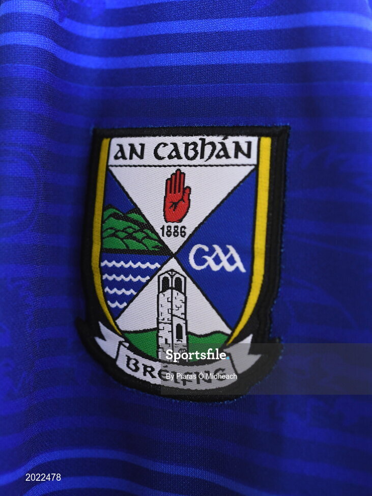 17 May 2021; A detailed view of the Cavan crest on the jersey during a Cavan football squad portrait session at Kingspan Breffni in Cavan. Photo by Piaras Ó Mídheach/Sportsfile