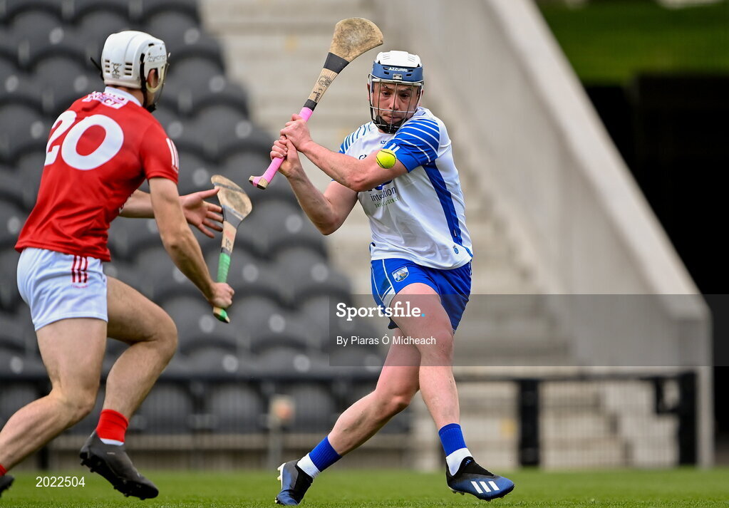 9 May 2021; Stephen Bennett of Waterford scores his side's first goal under pressure from James O'Flynn of Cork during the Allianz Hurling League Division 1 Group A Round 1 match between Cork and Waterford at Páirc Ui Chaoimh in Cork. Photo by Piaras Ó Mídheach/Sportsfile