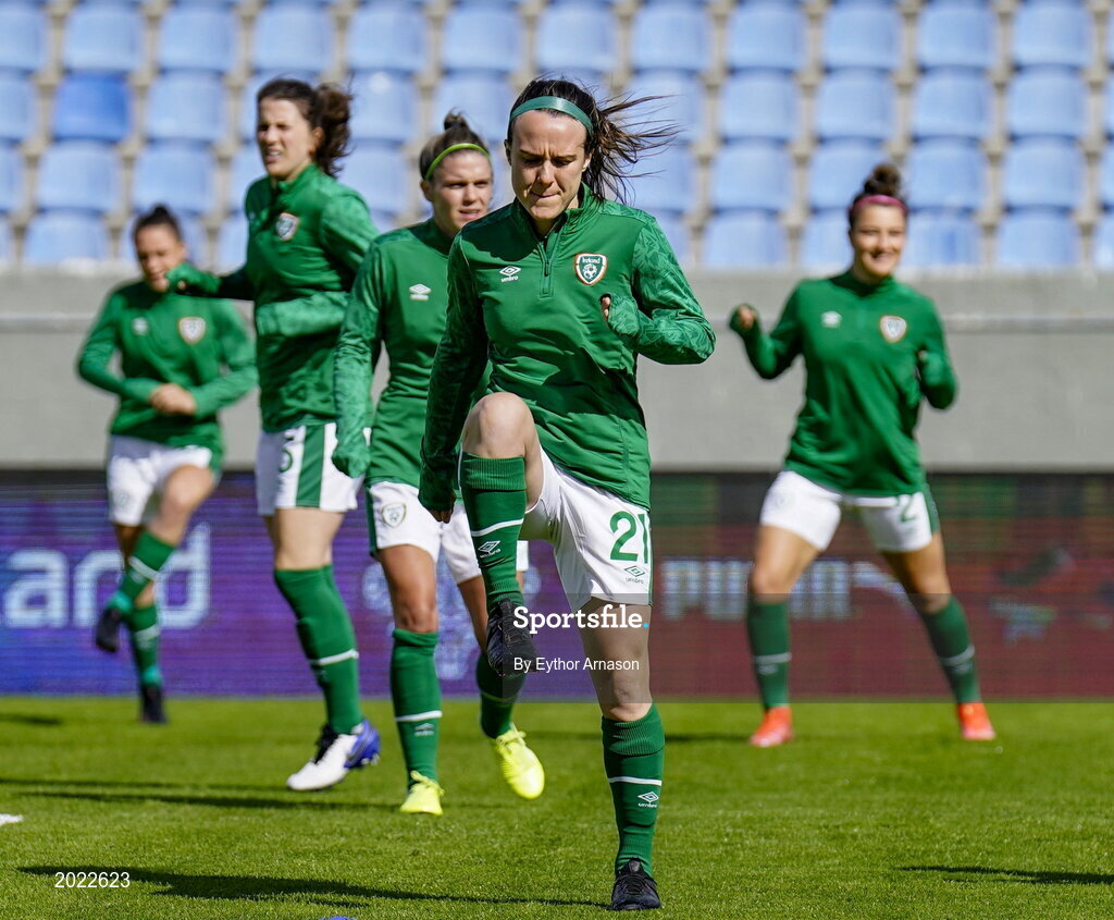 11 June 2021; Ciara Grant of Ireland warms up before the international friendly match between Iceland and Republic of Ireland at Laugardalsvollur in Reykjavik, Iceland. Photo by Eythor Arnason/Sportsfile