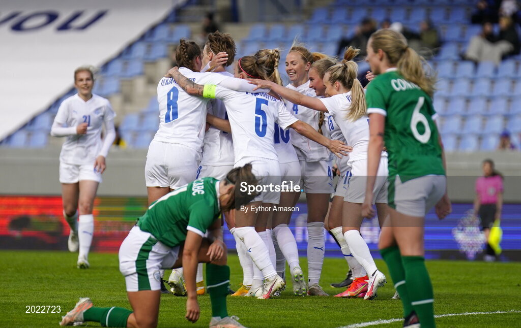 11 June 2021; Iceland players celebrate after scoring a goal during the international friendly match between Iceland and Republic of Ireland at Laugardalsvollur in Reykjavik, Iceland. Photo by Eythor Arnason/Sportsfile