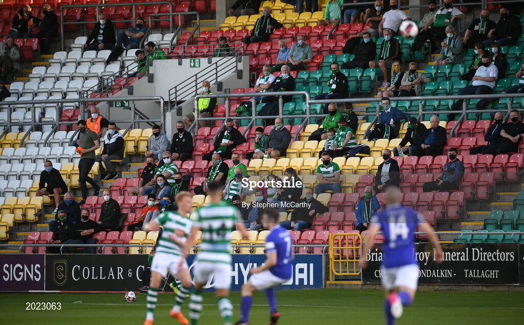 11 June 2021; Spectators during the SSE Airtricity League Premier Division match between Shamrock Rovers and Finn Harps at Tallaght Stadium in Dublin. The game is one of the first of a number of pilot sports events over the coming weeks which are implementing guidelines set out by the Irish government to allow for the safe return of spectators to sporting events. Photo by Stephen McCarthy/Sportsfile