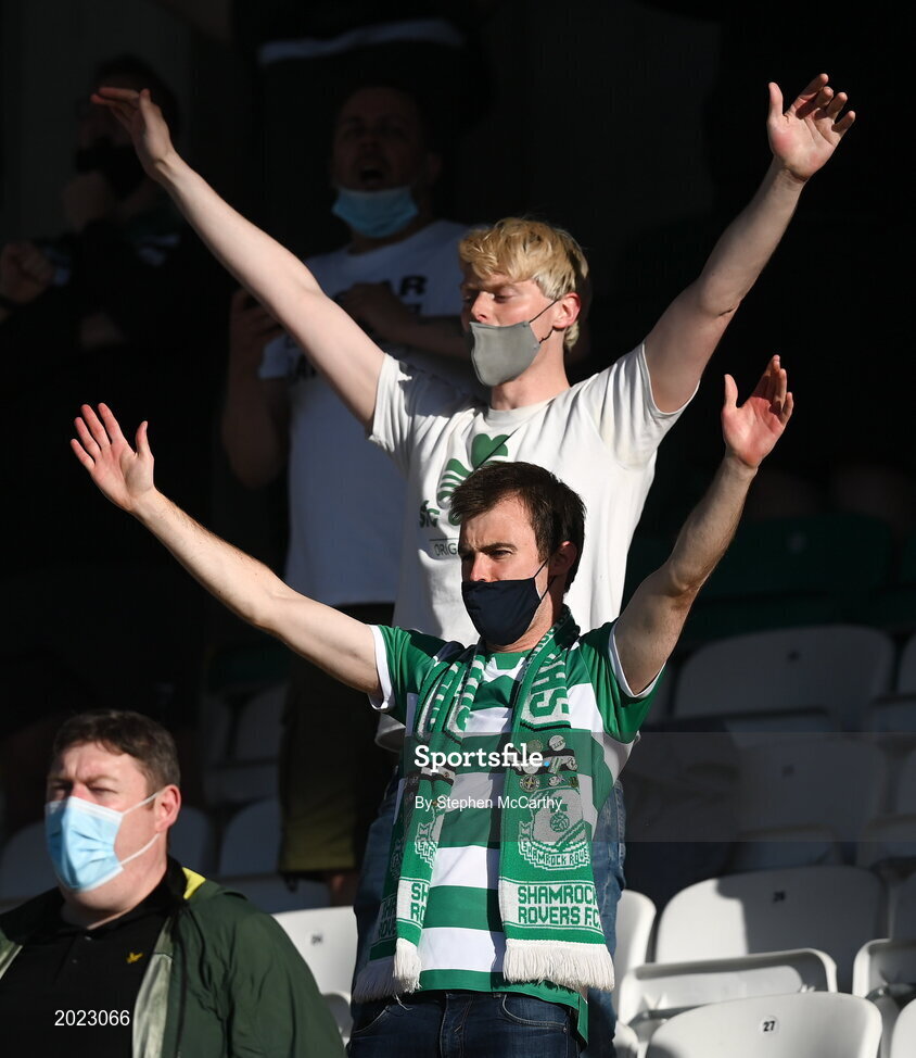 11 June 2021; Spectators during the SSE Airtricity League Premier Division match between Shamrock Rovers and Finn Harps at Tallaght Stadium in Dublin. The game is one of the first of a number of pilot sports events over the coming weeks which are implementing guidelines set out by the Irish government to allow for the safe return of spectators to sporting events. Photo by Stephen McCarthy/Sportsfile