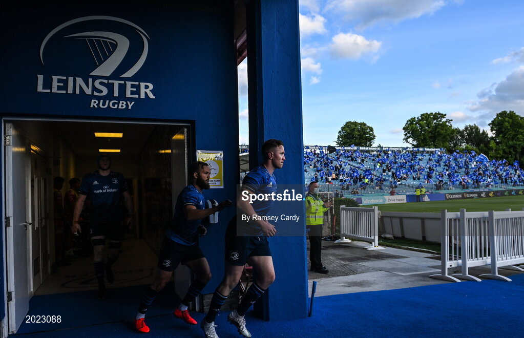 11 June 2021; Jamison Gibson-Park and Rory O'Loughlin of Leinster prior to the Guinness PRO14 match between Leinster and Dragons at the RDS Arena in Dublin. Photo by Ramsey Cardy/Sportsfile