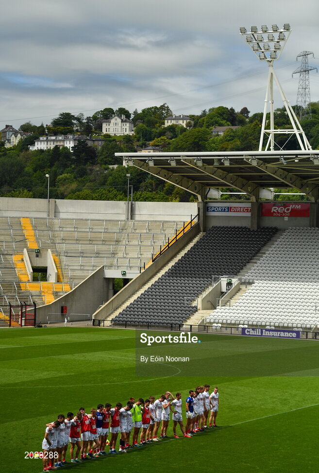 12 June 2021; Cork players observe a minutes silence for the late Tommy Lynch during the Allianz Football League Division 2 Relegation play-off match between Cork and Westmeath at Páirc Uí Chaoimh in Cork. Photo by Eóin Noonan/Sportsfile