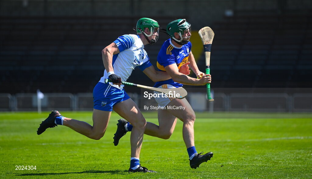 13 June 2021; Cathal Barrett of Tipperary in action against Michael Kiely of Waterford during the Allianz Hurling League Division 1 Group A Round 5 match between Waterford and Tipperary at Walsh Park in Waterford. Photo by Stephen McCarthy/Sportsfile