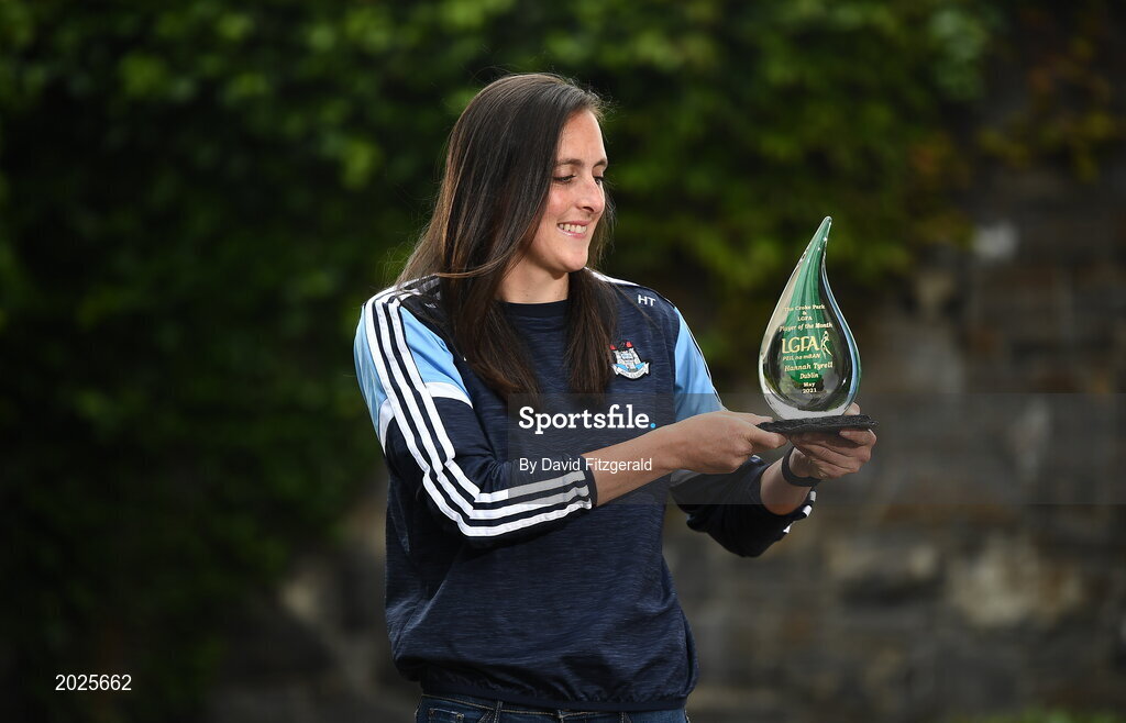 16 June 2021; Hannah Tyrrell of Dublin is pictured with The Croke Park/LGFA Player of the Month award for May, at The Croke Park in Jones Road, Dublin. Hannah has been in superb form in Dublin’s march to a Lidl National League Division 1 Final appearance against Cork on Saturday, June 26. During the course of Dublin’s two Lidl NFL Division 1B matches against Waterford and Cork in May, Hannah registered a combined total of 3-12. Photo by David Fitzgerald/Sportsfile