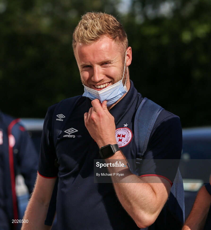 18 June 2021; Kevin O'Connor of Shelbourne arrives ahead of the SSE Airtricity League First Division match between Wexford and Shelbourne at Ferrycarrig Park in Wexford. Photo by Michael P Ryan/Sportsfile
