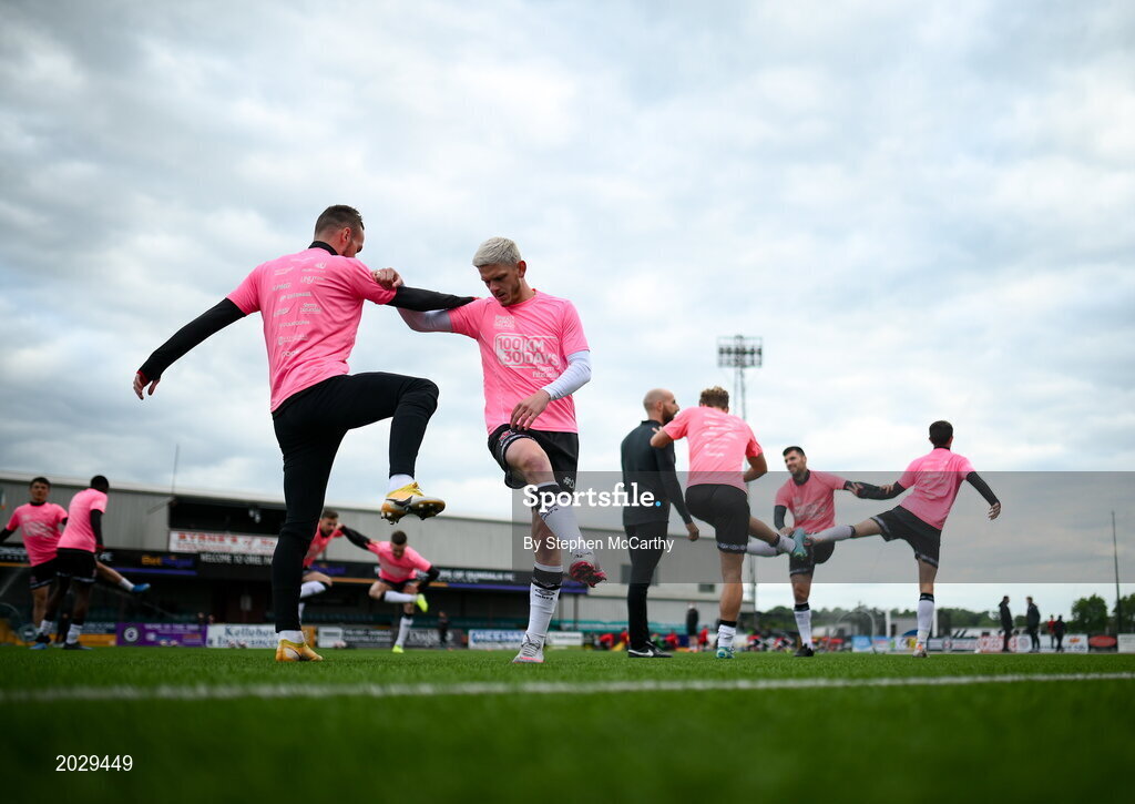 25 June 2021; Dundalk players warm up before the SSE Airtricity League Premier Division match between Dundalk and Derry City at Oriel Park in Dundalk, Louth. Photo by Stephen McCarthy/Sportsfile