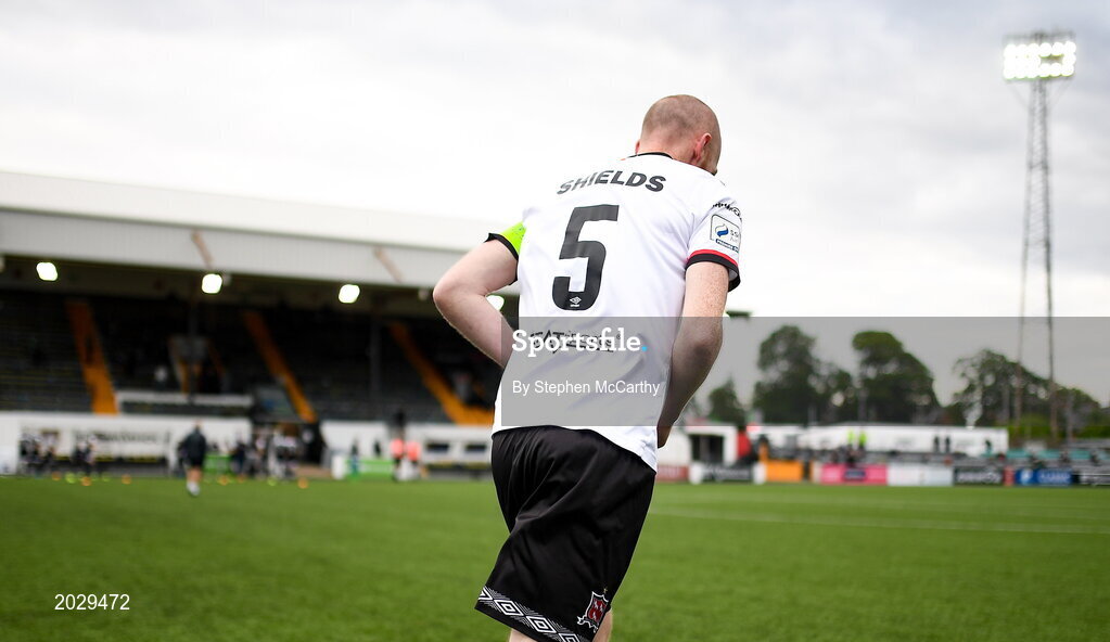 25 June 2021; Dundalk captain Chris Shields leads his side out ahead of playing his final game for the club before the SSE Airtricity League Premier Division match between Dundalk and Derry City at Oriel Park in Dundalk, Louth. Photo by Stephen McCarthy/Sportsfile