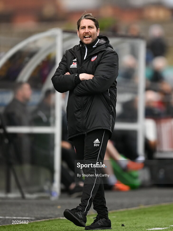 25 June 2021; Derry City manager Ruaidhrí Higgins during the SSE Airtricity League Premier Division match between Dundalk and Derry City at Oriel Park in Dundalk, Louth. Photo by Stephen McCarthy/Sportsfile
