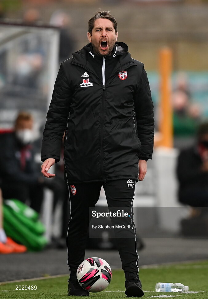 25 June 2021; Derry City manager Ruaidhrí Higgins during the SSE Airtricity League Premier Division match between Dundalk and Derry City at Oriel Park in Dundalk, Louth. Photo by Stephen McCarthy/Sportsfile