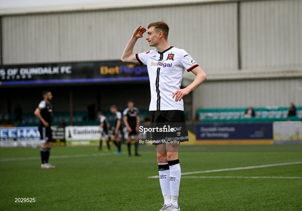 25 June 2021; Daniel Kelly of Dundalk celebrates after scoring his side's first goal during the SSE Airtricity League Premier Division match between Dundalk and Derry City at Oriel Park in Dundalk, Louth. Photo by Stephen McCarthy/Sportsfile