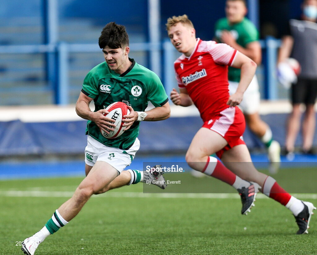 25 June 2021; Chris Cosgrave of Ireland on his way to scoring his side's second try during the U20 Six Nations Rugby Championship match between Wales and Ireland at Cardiff Arms Park in Cardiff, Wales. Photo by Gareth Everett/Sportsfile