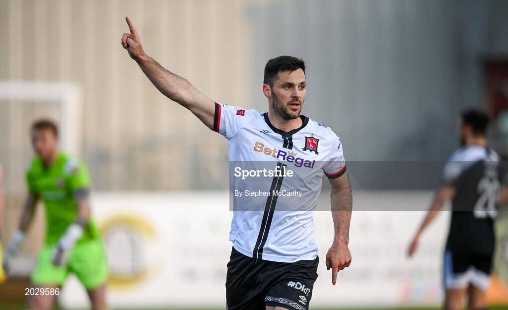 25 June 2021; Patrick Hoban of Dundalk celebrates after scoring his side's second goal during the SSE Airtricity League Premier Division match between Dundalk and Derry City at Oriel Park in Dundalk, Louth. Photo by Stephen McCarthy/Sportsfile