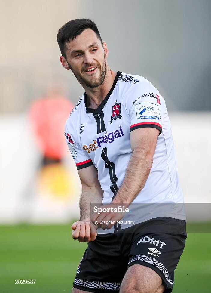 25 June 2021; Patrick Hoban of Dundalk celebrates after scoring his side's second goal during the SSE Airtricity League Premier Division match between Dundalk and Derry City at Oriel Park in Dundalk, Louth. Photo by Stephen McCarthy/Sportsfile