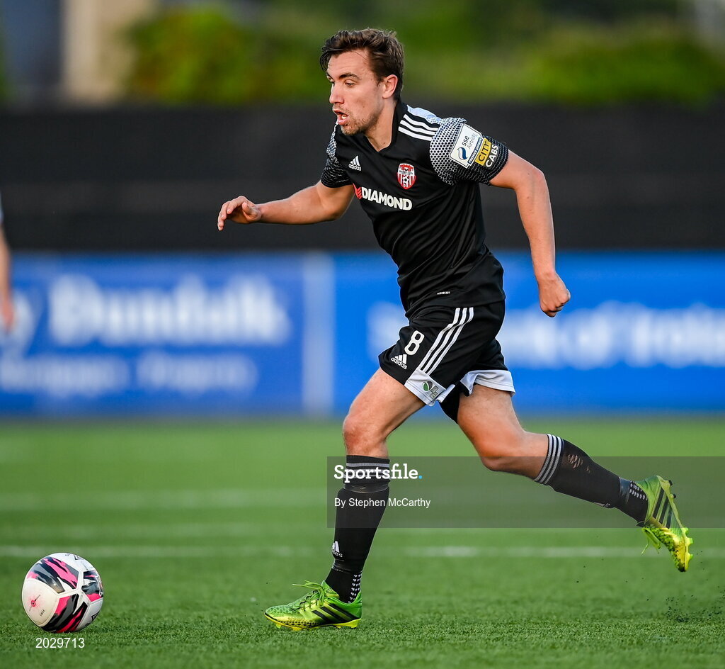 25 June 2021; Joe Thomson of Derry City during the SSE Airtricity League Premier Division match between Dundalk and Derry City at Oriel Park in Dundalk, Louth. Photo by Stephen McCarthy/Sportsfile