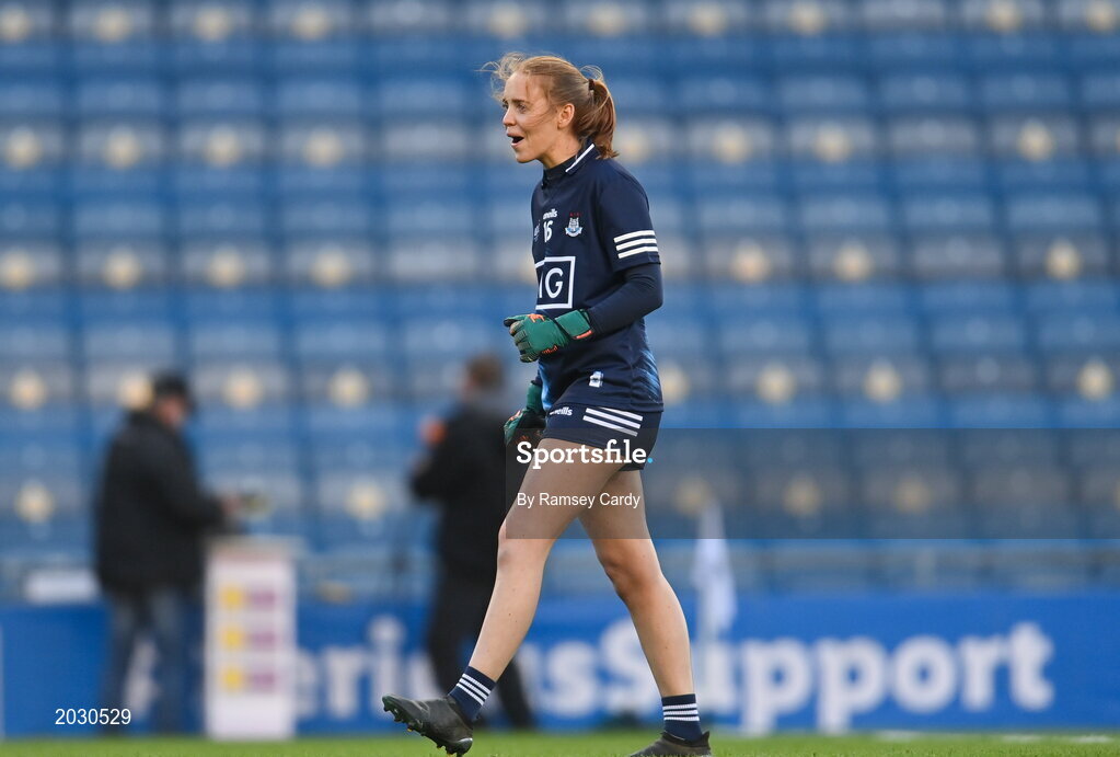 26 June 2021; Ciara Trant of Dublin celebrates at the final whistle of the Lidl Ladies Football National League Division 1 Final match between Cork and Dublin at Croke Park in Dublin. Photo by Ramsey Cardy/Sportsfile