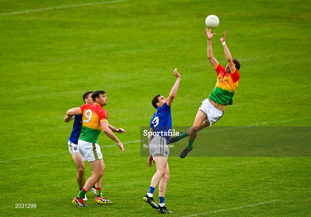 27 June 2021; Sean Gannon of Carlow in action against Michael Quinn of Longford during the Leinster GAA Football Senior Championship Round 1 match between Carlow and Longford at Bord Na Mona O’Connor Park in Tullamore, Offaly. Photo by Eóin Noonan/Sportsfile