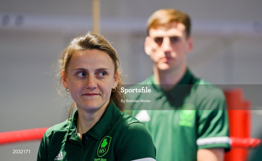 29 June 2021; Sister and brother Michaela Walsh, left, and Aidan Walsh during a Tokyo 2020 Team Ireland Announcement for Boxing in the Sport Ireland Institute at the Sport Ireland Campus in Dublin. Photo by Brendan Moran/Sportsfile
