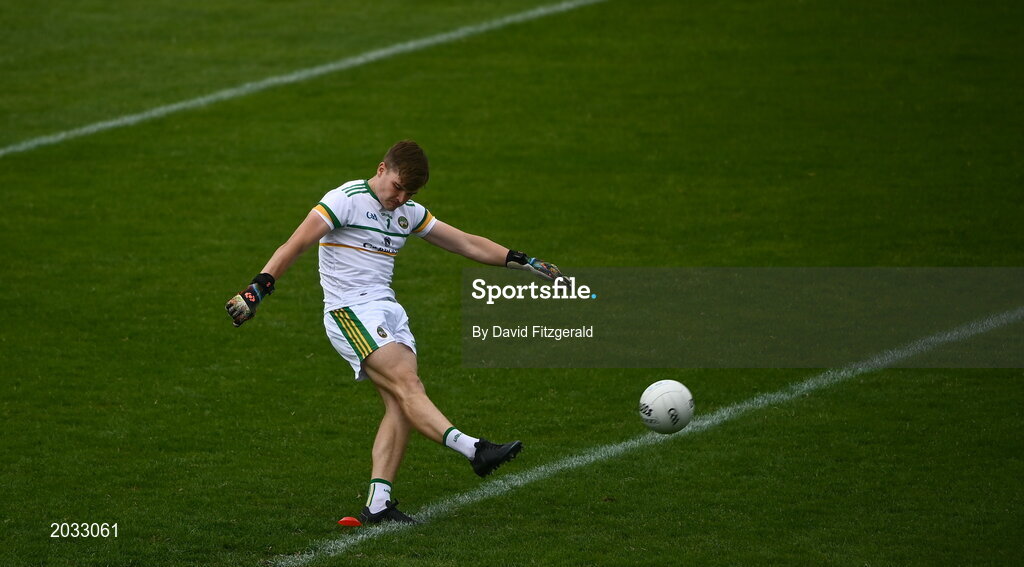 27 June 2021; Offaly goalkeeper Paddy Dunican during the Leinster GAA Football Senior Championship Round 1 match between Louth and Offaly at Páirc Tailteann in Navan, Meath. Photo by David Fitzgerald/Sportsfile