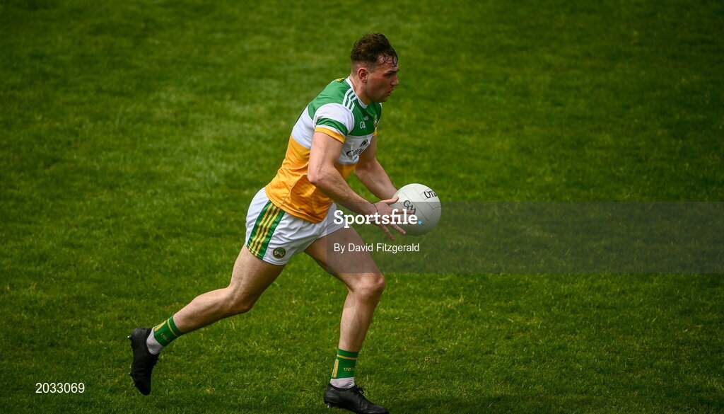 27 June 2021; Jordan Hayes of Offaly during the Leinster GAA Football Senior Championship Round 1 match between Louth and Offaly at Páirc Tailteann in Navan, Meath. Photo by David Fitzgerald/Sportsfile
