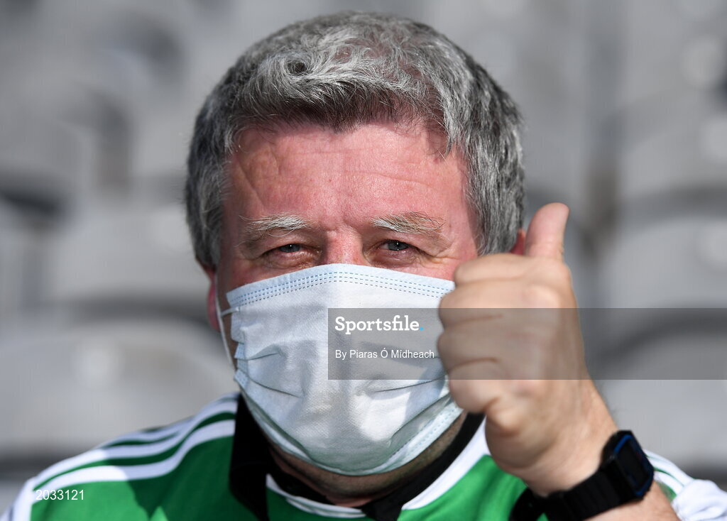 19 June 2021; Offaly supporter Mick McDonagh, from Tullamore, at the Allianz Football League Division 3 Final match between Derry and Offaly at Croke Park in Dublin. Photo by Piaras Ó Mídheach/Sportsfile