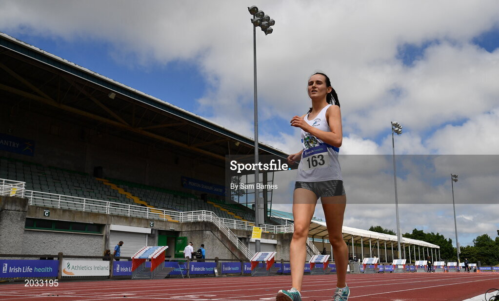 27 June 2021; Niamh O'Connor of Celbridge AC, Kildare, competing the Women's 5000m Walk during day three of the Irish Life Health National Senior Championships at Morton Stadium in Santry, Dublin. Photo by Sam Barnes/Sportsfile