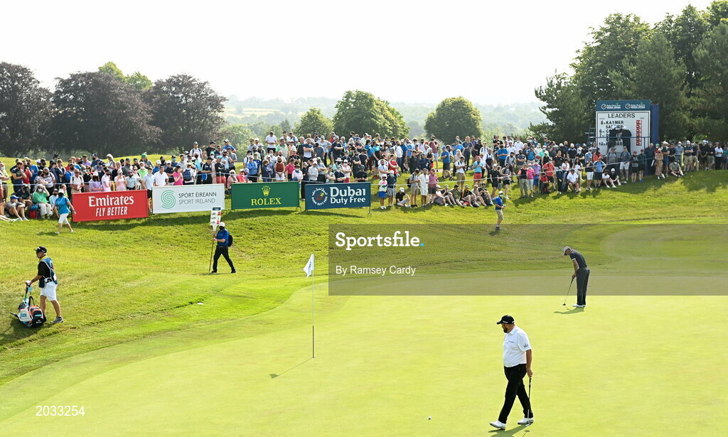 1 July 2021; Shane Lowry of Ireland lines up a putt on the 18th as spectators look on during day one of the Dubai Duty Free Irish Open Golf Championship at Mount Juliet Golf Club in Thomastown, Kilkenny. Photo by Ramsey Cardy/Sportsfile