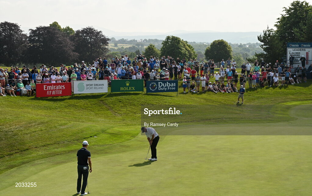 1 July 2021; Shane Lowry of Ireland putts on the 18th as spectators look on during day one of the Dubai Duty Free Irish Open Golf Championship at Mount Juliet Golf Club in Thomastown, Kilkenny. Photo by Ramsey Cardy/Sportsfile