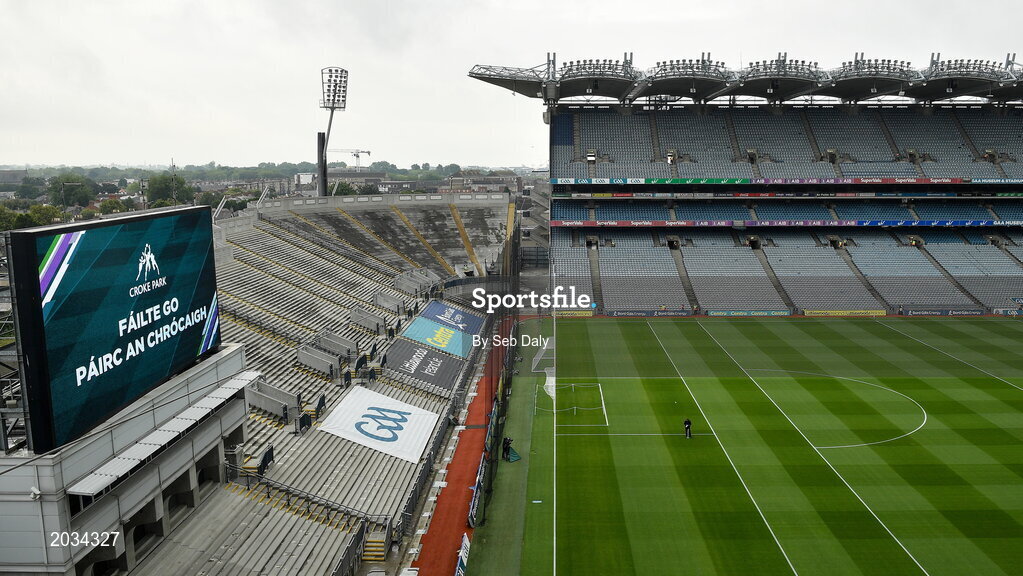 3 July 2021; A view of the big screen as it welcomes supporters to Croke Park before the Leinster GAA Hurling Senior Championship Semi-Final match between Dublin and Galway at Croke Park in Dublin. Photo by Seb Daly/Sportsfile