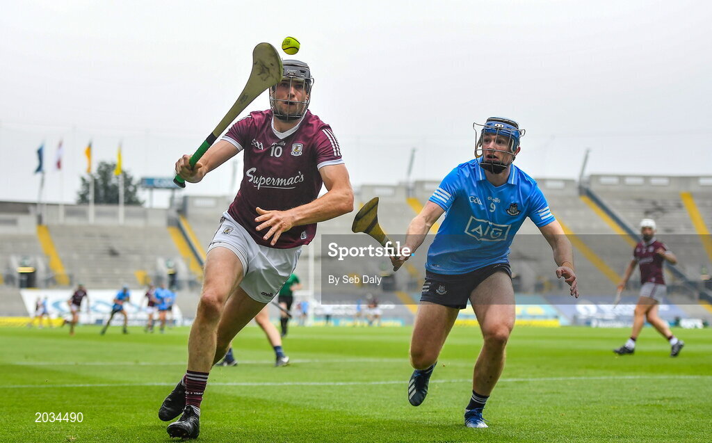 3 July 2021; Joseph Cooney of Galway in action against Conor Burke of Dublin during the Leinster GAA Hurling Senior Championship Semi-Final match between Dublin and Galway at Croke Park in Dublin. Photo by Seb Daly/Sportsfile