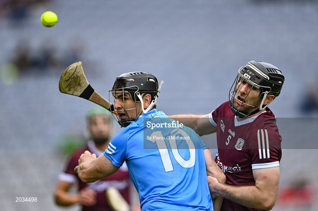 3 July 2021; Danny Sutcliffe of Dublin in action against Pádraic Mannion of Galway during the Leinster GAA Hurling Senior Championship Semi-Final match between Dublin and Galway at Croke Park in Dublin. Photo by Piaras Ó Mídheach/Sportsfile