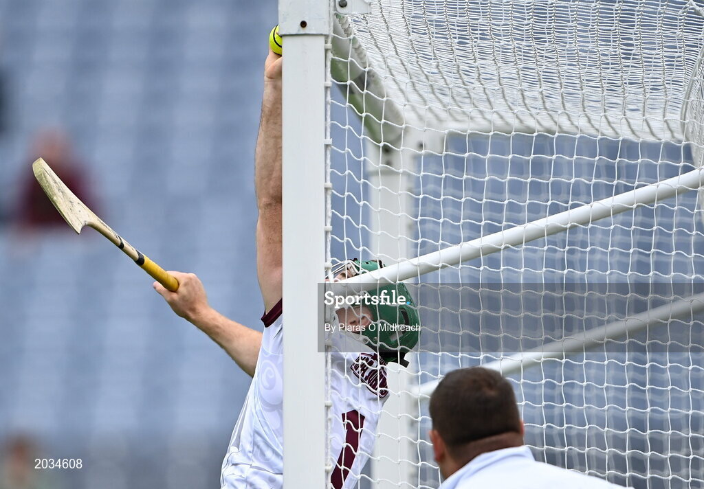 3 July 2021; Galway goalkeeper Éanna Murphy catches the ball in the square from a first half shot from Rian McBride of Dublin during the Leinster GAA Hurling Senior Championship Semi-Final match between Dublin and Galway at Croke Park in Dublin. Photo by Piaras Ó Mídheach/Sportsfile