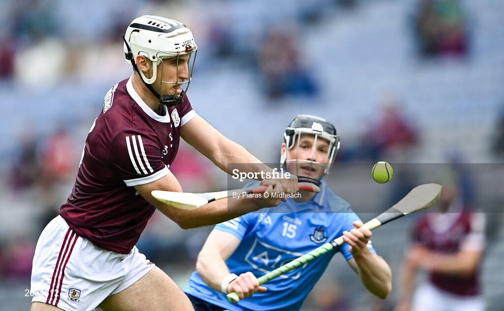 3 July 2021; Daithí Burke of Galway in action against Cian O'Sullivan of Dublin during the Leinster GAA Hurling Senior Championship Semi-Final match between Dublin and Galway at Croke Park in Dublin. Photo by Piaras Ó Mídheach/Sportsfile