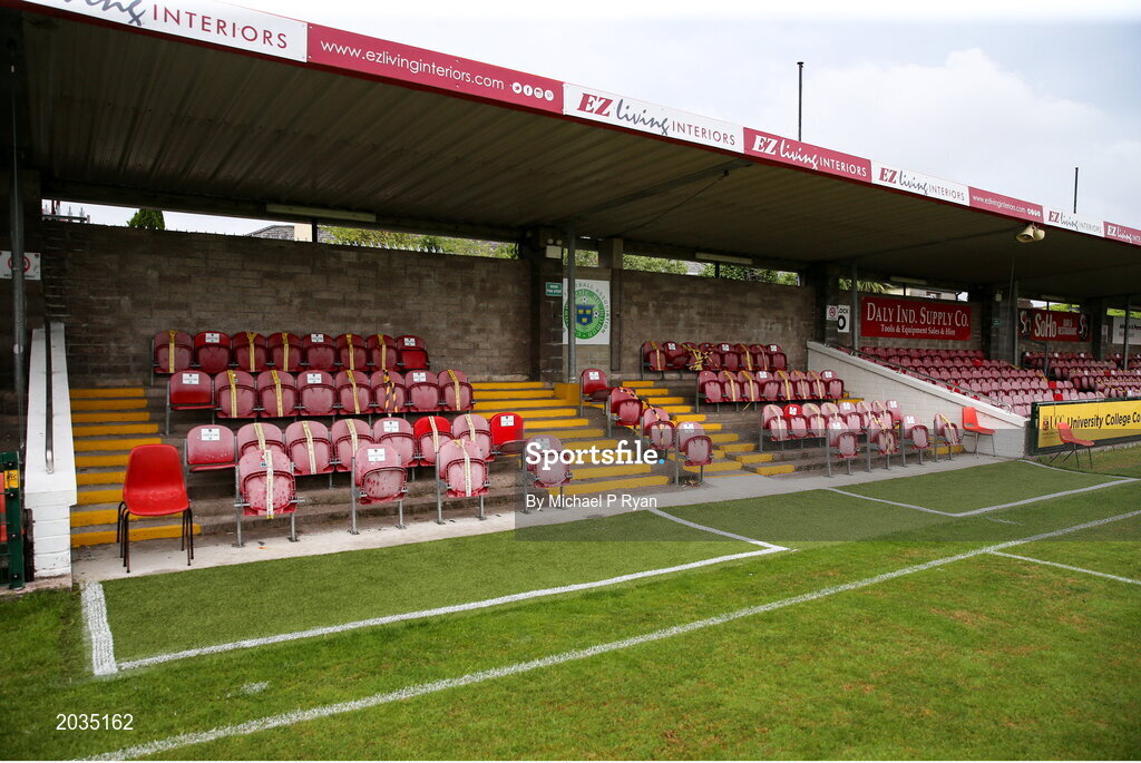 2 July 2021; A general view of the dugout area ahead of the SSE Airtricity League First Division match between Cork City and Treaty United at Turners Cross in Cork. Photo by Michael P Ryan/Sportsfile