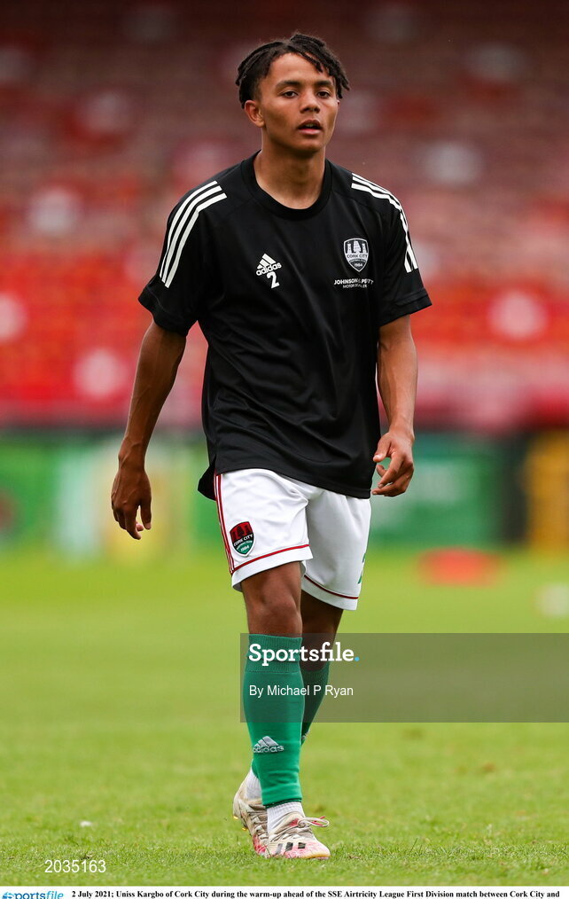 2 July 2021; Uniss Kargbo of Cork City during the warm-up ahead of the SSE Airtricity League First Division match between Cork City and Treaty United at Turners Cross in Cork. Photo by Michael P Ryan/Sportsfile