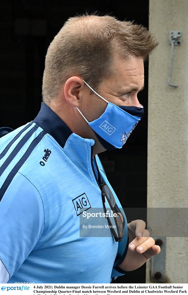 4 July 2021; Dublin manager Dessie Farrell arrives before the Leinster GAA Football Senior Championship Quarter-Final match between Wexford and Dublin at Chadwicks Wexford Park in Wexford. Photo by Brendan Moran/Sportsfile