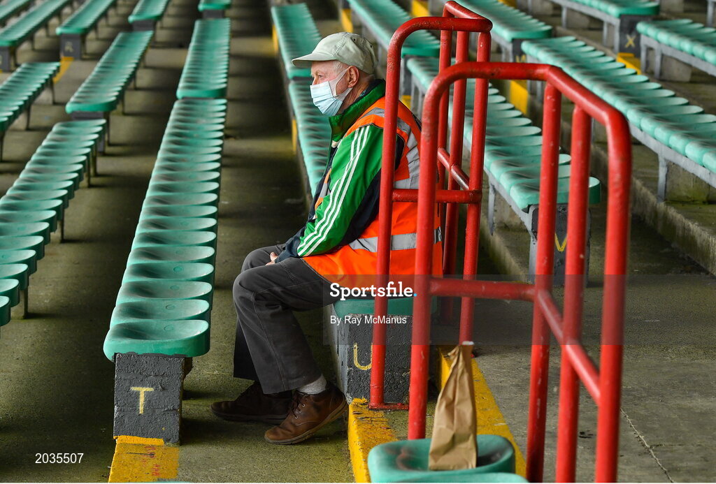 4 July 2021; Maor Richard O'Rourke from Kilmallock awaits the arrival of supporters in advance of the Munster GAA Hurling Senior Championship Semi-Final match between Tipperary and Clare at LIT Gaelic Grounds in Limerick. Photo by Ray McManus/Sportsfile