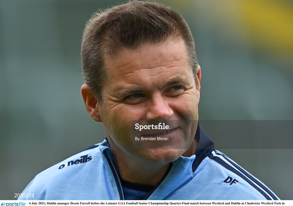 4 July 2021; Dublin manager Dessie Farrell before the Leinster GAA Football Senior Championship Quarter-Final match between Wexford and Dublin at Chadwicks Wexford Park in Wexford. Photo by Brendan Moran/Sportsfile