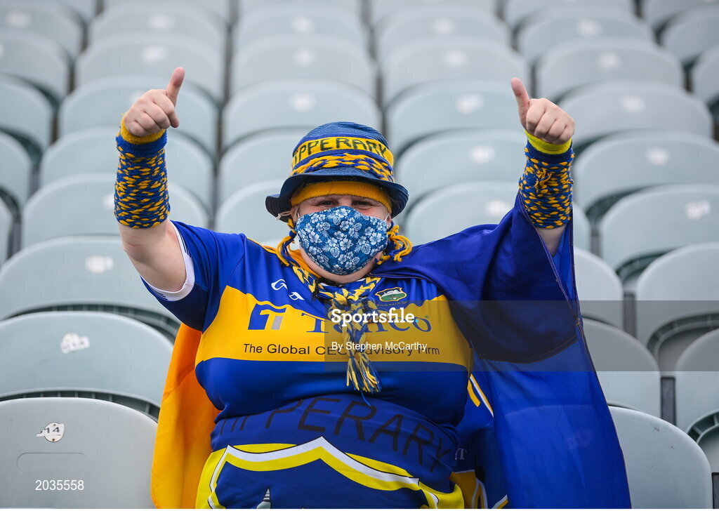 4 July 2021; Tipperary supporter Margaret McGrath from Emly, Co Tipperary before the Munster GAA Hurling Senior Championship Semi-Final match between Tipperary and Clare at LIT Gaelic Grounds in Limerick. Photo by Stephen McCarthy/Sportsfile