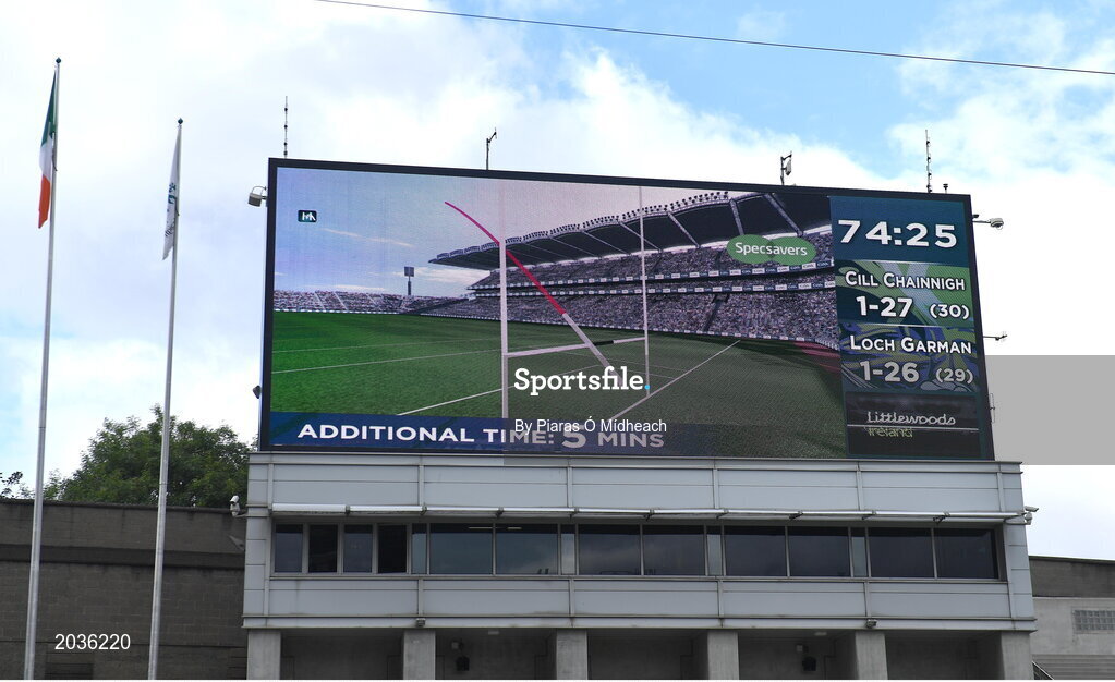 3 July 2021; The big screen shows the result of Hawk-Eye, awarding a point to Wexford, scored by Liam Ryan, for the last score of normal time during the Leinster GAA Hurling Senior Championship Semi-Final match between Kilkenny and Wexford at Croke Park in Dublin. Photo by Piaras Ó Mídheach/Sportsfile