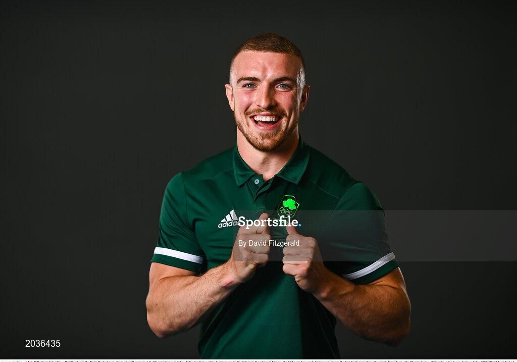 6 July 2021; Team Ireland has officially selected the Men’s Rugby Sevens Team who will compete at the Olympic Games in Tokyo. Following their exciting dominance in the final Olympic Repechage in Monaco, the Irish team have made history in becoming the first Rugby team that will compete for Ireland at the Olympic Games. Pictured is Adam Leavy during a Tokyo 2020 Official Team Ireland Announcement for Rugby 7s at Sport Ireland Campus in Dublin. Photo by David Fitzgerald/Sportsfile
