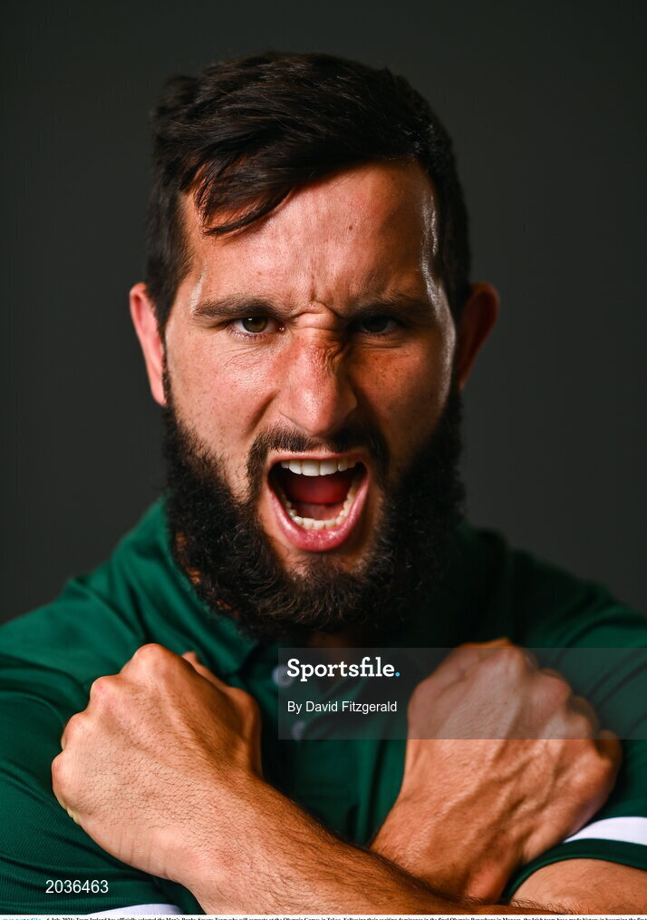 6 July 2021; Team Ireland has officially selected the Men’s Rugby Sevens Team who will compete at the Olympic Games in Tokyo. Following their exciting dominance in the final Olympic Repechage in Monaco, the Irish team have made history in becoming the first Rugby team that will compete for Ireland at the Olympic Games. Pictured is Mark Roche during a Tokyo 2020 Official Team Ireland Announcement for Rugby 7s at Sport Ireland Campus in Dublin. Photo by David Fitzgerald/Sportsfile